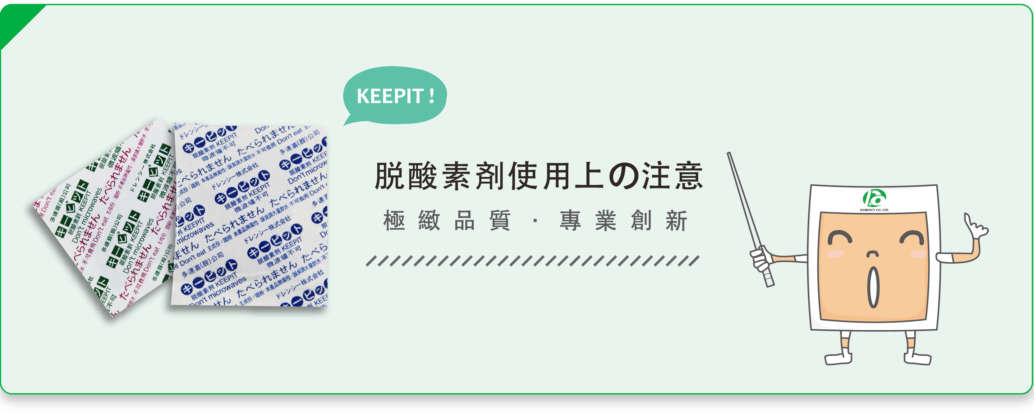 | 2 | 脫氧劑為真空包裝,如發現脫氧不良,請向本公司提出更換。 |